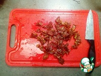 Сушеные (вяленые) помидоры вынимаем из масла и нарезаем половинками/четверти нками - как вам нравится :-) |