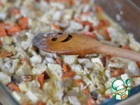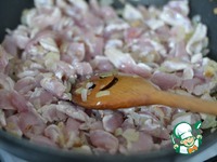 Лук нарезать на кусочки. На сковороде разогреть 2 ст. ложки подсолнечного масла и обжарить лук. Добавить мясо и, постоянно мешая, быстро обжарить до белого цвета. |