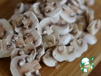Шампиньоны почистить и нарезать на пластинки. Добавить к мясу и тушить еще 5 минут. Снять с огня и слегка остудить. |