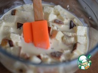 В отдельной миске взбить яйца и сливки. Посолить и поперчить. Ломтики батона нарезать на кусочки и залить взбитыми яйцами. |