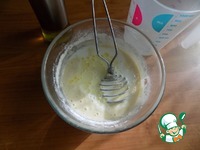 Разбавляем его оставшимся молоком и добавляем масло подсолнечное, соединяем опять же венчиком. Масло добавляем обязательно Этот ингредиент позволит не смазывать сковороду каждый раз перед выпеканием. |