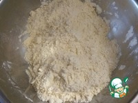 Смешать муку с разрыхлителем, добавить нарезанное кусочками сливочное масло. Растереть руками в крошку. |