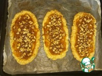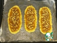 Затем в лодочки выкладываем джем, сверху посыпаем рублеными орехами. Отправляем наше печенье опять в духовку минут на 15-20, при 180°С, и выпекаем до золотистого цвета. |