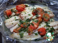 Аккуратно кладем филе трески в рукав для запекания. |
