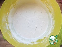 Всыпаем соду, просеянную муку. Тесто должно получится густым, почти как на оладьи. |