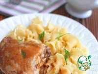 Добавить 2 стакана куриного бульона, добавить лавровый лист. Загустить соус, помешивая, до нужной консистенции. |