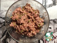 В фарш добавляем мелко нарезанный лук, протертый на терке чеснок, молоко, горошек, сметану. Перчим и солим. Хорошо перемешиваем. |