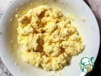 Готовим начинку. Яйца и сыр трем на мелкой терке и хорошо размешиваем со сливочным маслом. Немного солим. |