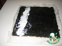 далее на водоросли выкладываем, даже точнее намазываем сыр "Филадельфия"(можно заменить любым плавленным сливочным сыром) |