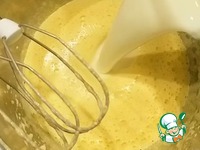 Добавьте просеянную муку и разрыхлитель, перемешайте. |