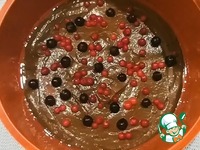 Залейте шоколадный слой теста, белым слоем теста с яблоками и украсьте его оставшимися ягодами. Можно использовать любые ягоды, как в свежем, так и в замороженном виде. |