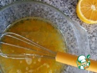 С апельсина снять цедру (стараясь не задеть белую часть), сам апельсин разделить пополам и с половины выжать сок. Добавить цедру, сок и ванильный сахар к сахарно-масляной смеси. |