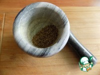 Стандартный набор специй для узбекского плова: зира, куркума, барбарис, чеснок, острый перец (стручок). Зиру нужно растолочь в ступке обязательно, так она в плове раскроет лучше свой аромат. |