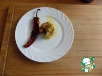 Убираем на тарелку чеснок и перец. Я никогда это не выкидываю, а кладу потом в готовое блюдо. Очень у меня любят такой чеснок из плова. |