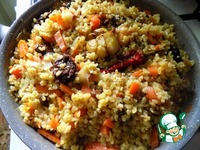 Описание: Сегодня я сделала плов без мяса и из булгура с сухофруктами: курагой, изюмом и черносливом. За основу взяла плов по-узбекски с рисом. Использовала специи, которые добавляются в узбекский плов, а это: барбарис, куркума и зира, чеснок, стручок острого перца. У меня на сайте есть рецепт плова, но с рисом. Вот ссылка: https://www.povareno k.ru/recipes/show/15 0057/. Плов хорош не только в дни Поста, когда разрешено масло постное. Его можно приготовить и в обычные дни. Я дам подробное описание этого блюда и ингредиенты менять не нужно! У Вас получится сытное, ароматное, красивое и вкусное блюдо на обед или ужин.