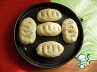Делим на части, которые можно затем раскатать и сформировать пирожки, визуально определяя размер будущих пирожков. У меня получилось 5 частей. |