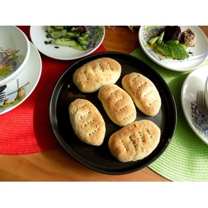 Подаём. Я сделала на обед вместо хлеба и подала к салату и грибным щам. |