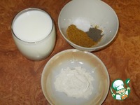 Подготавливаем для заливки молоко, муку и специи с солью. |