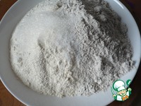 Смешайте пшеничную муку со ржаной, добавьте соль и сахар. |