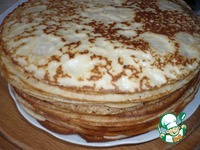 Продолжайте промазывать и укладывать блины, пока не кончатся продукты. |