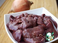 Нарезать лук, обжарить его на среднем огне до прозрачности. Куриную печень тщательно промыть, нарезать, добавить к луку. Жарить 3-5 минут, помешивая. |