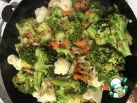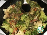 Я, в своём варианте добавляю соевый соус. Вы можете использовать бульон. Или воду. Нужно буквально 2-4 ложки (если с соусом, то 50/50 с водой) |