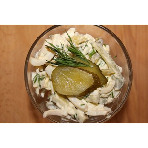 Салат с кальмарами и маринованными огурцами — кулинарный рецепт с сайта Поварёнок.ру.