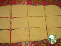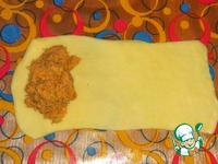 Каждый прямоугольник ещё немного раскатать в длину. На край прямоугольника выложить немного начинки. |