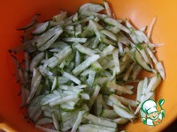 Огурцы нарезать соломкой. |