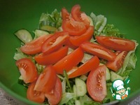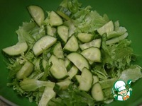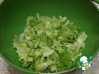 Оливковое масло и лимонный сок тщательно встряхнуть в небольшой баночке, плотно закрыв крышкой. Салат посолить, полить заправкой и аккуратно перемешать. |