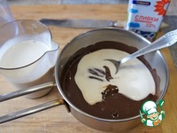 Шоколад поломать на кусочки и растопить на водяной бане, снять с огня и смешать со сливками. |