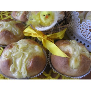 Описание: Пушистые, нежные, мягкие булочки, с шапочкой из запеченного ванильного пудинга будут прекрасным дополнением к вашему Пасхальному столу! Тесто замешивается на раз-два, а результат вас обязательно порадует! Заходите на чай с булочками, угощаю!
