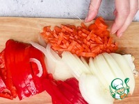 Нарезать соломкой болгарский перец, репчатый лук, морковь. |