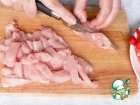 Нарезать куриное филе небольшими кусочками. |
