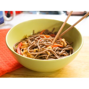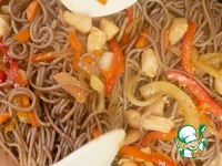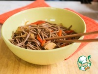 Описание: Предлагаю приготовить гречневую лапшу (собу) с овощами и курицей. В качестве основного ингредиента используется гречневая лапша, овощи можно использовать любые, я готовила с луком, морковью и болгарским перцем. Также я добавила куриное филе, его можно при желании исключить.