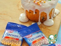 Для декора рекомендую взять готовую глазурь Dr.Oetker Пакет с глазурью поместите в горячую воду на несколько минут, чтобы глазурь нагрелась и покройте верх кулича. |