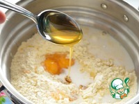 Влейте растворённые в молоке дрожжи, добавьте яйца и мёд |