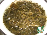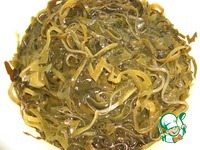 Морскую капусту промыть в 5-10 водах, чтобы вымыть весь песок. Можно отварить (готовьтесь - запах будет не из приятных!), но я не провариваю, она мне так вкуснее. ;)