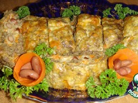 С помощью пекарской бумаги заверните в рулет и переложите на противень, поставьте в разогретую до 200*С духовку на 30 минут |