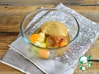 В миске соединить яйца, сахар, сгущеное молоко и масло. |
