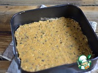 Квадратную форму (24х24) застелить пергаментом, пергамент чуть смазать маслом. Выложить тесто и разровнять лопаткой по всей форме. |