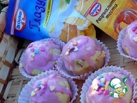 Готовим глазурь, как написано на упаковке и поливаем ей уже готовые, остывшие кексы. Дополнительно украсив кондитерской посыпкой. |