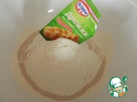 Первым шагом, необходимо в миску просеить 400г муки и добавить к ней 7г дрожжей (Dr.Oetker), перемешать и оставить на 15 минут. Это, кстати, рекомендации производителя. |