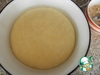 Готовое тесто положить в смазанную растительным маслом миску, накрыть полотенцем и отправить в теплое место до увеличения в объеме в 2,5-3 раза (у меня на это ушло 1ч 20мин). |