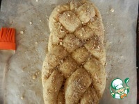 Дать косичке отдохнуть минут 10 пока разогревается духовка. Серху косу смазать взбитым яйцом и посыпать крошкой из миндаля с ванильным сахаром. Выпекать нашу косу при 180 градусах 30 минут. |