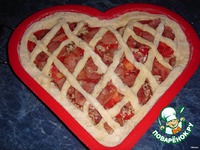5. Поливаем небольшим количеством сливок. 6. Закрываем пирог указанным способом (см. фото), ну, или как заблагорассудится :-) Приятного аппетита! |