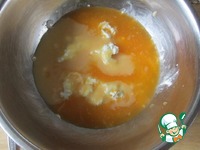 Заварную массу с шоколадом добавляем к творогу, вливаем сок с желатином. |