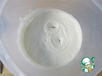 Взбиваем оставшиеся холодные сливки с сахарной пудрой. |