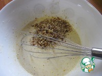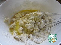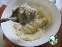Влить теплое растопленное сливочное масло, - теперь лучше работать ложкой, тесто будет очень густым |