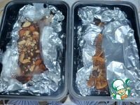 Разложить по 430 г. в каждую форму, разровнять лопаткой, сверху украсить на Ваше усмотрение. Формы прикрыть и убрать в холодильник на 4-12 часов. Я убираю на ночь. |